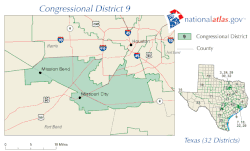 Le 9e district congressionnel du Texas comprend la partie sud-ouest de la région du Grand Houston, au Texas. Le Représentant actuel du district, depuis 2005, est le Démocrate Al Green.