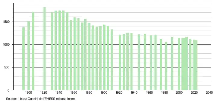 - ↑ Fiches Insee - Populations de référence de la commune pour les années 2006, 2007, 2008, 2009, 2010, 2011, 2012, 2013, 2014, 2015, 2016, 2017, 2018, 2019, 2020, 2021 et 2022.