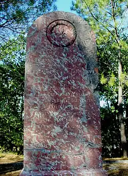 « L’an MDCCLXXXVI (1786), sous les auspices du roi Louis XVI, Nicolas Brémontier, inspecteur général des Ponts et Chaussées, fixa le premier ces dunes et les couvrit de forêts. En mémoire du bienfait, Louis XVIII, continuant les travaux de son frère, éleva ce monument. Antoine Laine, ministre de l’Intérieur, Camille, comte de Tournon, préfet de la Gironde MDCCCXVIII (1818). »