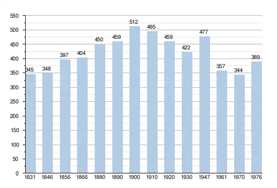 - Sources : INS, Rem. : 1831 jusqu'en 1970 = recensements, 1976 = nombre d'habitants au 31 décembre[2].