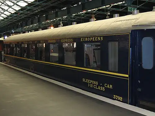 - voitures-lits de type F spécialement construites au gabarit britannique. Leur conception s'est inspirée de la voiture-lits de type Y mais avec neuf cabines (Single ou Double) au lieu de onze. Elles avaient la particularité d'être les seules dont les cabines comportaient des gilets de sauvetage, tandis que leurs parois métalliques leur donnaient l'aspect de couloirs de bateau. Une première série de douze voitures (n° 3788 à 3799) a été construite entre 1935 et 1936 par les Ateliers de construction du Nord de la France. Un exemplaire de cette série (n° 3792) a été préservé au Musée Britannique du Chemin de Fer à York. La construction d'une deuxième série de six voitures (n° 3800 à 3805), dite "complémentaire", a débuté en 1939 mais n'a été livrée qu'en 1945 en raison du conflit. Cette construction a été confiée à la Compagnie générale de construction de Saint-Denis. L'une des voitures de cette série (n° 3801) a été rachetée par le chemin de fer de la Bluebell en Grande-Bretagne après la fin du service. Une troisième et dernière série de sept voitures (n° 3983 à 3989), dont cinq au titre de dommages de guerre, a été construite par la même compagnie de construction en 1952. À partir de 1974, certaines voitures-lits ont eu leur décoration rafraîchie, dans l'esprit T2: livrée bleue et blanche de type Trans-Euro-Nuit, tapis rouge épais, portes de cabines matelassées de simili-cuir. À la même époque, un billet Global à prix attractif pour contrer l'avion, fut lancé avec succès. En 1976, les conducteurs de wagons-lits de British Rail ont remplacé ceux de la Compagnie des wagons-lits. La modernisation de ce train, par l'introduction de nouvelles voitures-lits conçues par British Rail, a longtemps été évoquée, sans aboutir. C'est la vétusté de ce matériel spécifique qui a été la cause principale de la suppression du service le .