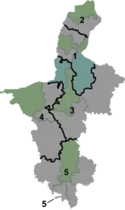 Le système d'administration territoriale est le même que dans le reste de la Chine. Au niveau immédiatement inférieur à la province, la ville-préfecture est l'unité par défaut. Le Ningxia en compte cinq.