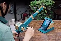 Interrogés sur le choix du matériau de construction, les développeurs ont répondu que le carton avait été préféré au plastique car l’imprimante 3D qu’ils utilisaient pour le prototypage était incapable de suivre le rythme de leurs tests : « Nous fabriquions, ajustions et testions très rapidement. L’imprimante 3D ne pouvait pas suivre. ». Le carton permet également aux joueurs de « monter leur projet eux-mêmes, le réparer eux-mêmes, le customiser.... et ainsi de suite »[25].