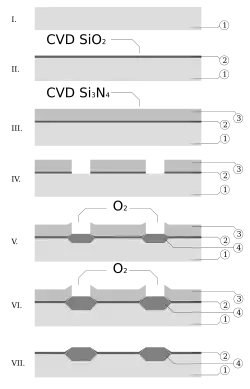 Exemple d'oxydation locale à travers un masque en Si3N4.