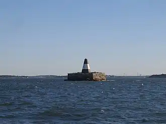 Reconnaissant le danger que représentait la disparition progressive de l'île pour la navigation portuaire, la Boston Marine Society fit appel au Congrès pour construire un mur de pierre servant de balise de détresse autour des vestiges de l'île en . En l'absence de toute action du Congrès, le Commonwealth du Massachusetts acheta l'île et autorisa cette construction. En 1832, le gouvernement américain acheta l'île et commença à construire la plate-forme en pierre et la pyramide en bois, qui fut frappée par la foudre et brûlée en 1841, puis reconstruite.