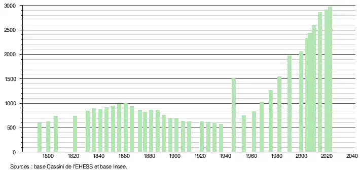 - ↑ Fiches Insee - Populations de référence de la commune pour les années 2006, 2007, 2008, 2009, 2010, 2011, 2012, 2013, 2014, 2015, 2016, 2017, 2018, 2019, 2020, 2021 et 2022.