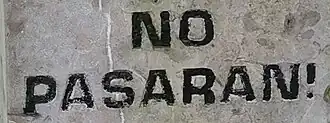 ¡No pasarán!, signifiant « Ils ne passeront pas ! » en espagnol, a été prononcée par les partisans de la Seconde République espagnole (1936-1939) en lutte contre les rebelles nationalistes commandés par le général Franco, dont le soulèvement des 17 et 18 juillet 1936 déclenche la guerre civile espagnole. Le peintre Ramón Puyol Román l'utilise dans ses affiches[1].