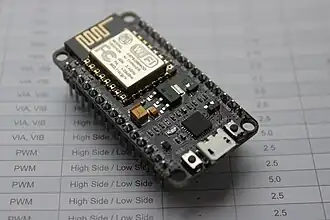 NodeMCU est une plate-forme open source IoT, matérielle et logicielle[5],[6], basée sur un SoC Wi-Fi ESP8266 ESP-12 fabriqué par Espressif Systems[7],[2]. Le terme « NodeMCU » se réfère par défaut au firmware plutôt qu'aux kits de développement. Le firmware, permettant nativement l'exécution de scripts écrits en Lua, est basé sur le projet eLua[8] et construit sur le SDK Espressif Non-OS pour ESP8266[9]. Il utilise de nombreux projets open source comme lua-cjson[10] et spiffs[11]. Depuis , une version utilisant le processeur ESP32-C3 d’architecture RISC-V est également disponible[3].