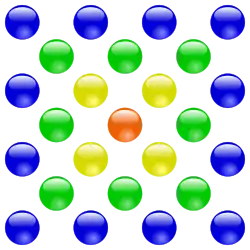 Un nombre carré centré C est un nombre figuré centré qui peut être représenté par C points dans un carré avec un point placé au centre et les autres points disposés en couches carrées concentriques de 4 points, 8 points, 12 points, etc. Ainsi, le n-ième carré centré comporte n points sur chaque rayon et sur chaque côté [1]: