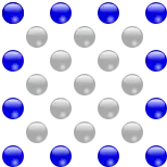 - La dernière égalité est représentée ci-dessous pour n = 1, 2, 3, et 4 ; la n-ième figure est formée en considérant un carré de 2n – 1 points par 2n – 1 points, et en sélectionnant la moitié des points : à partir du coin supérieur gauche, jusqu'au point central inclus.[réf. souhaitée]