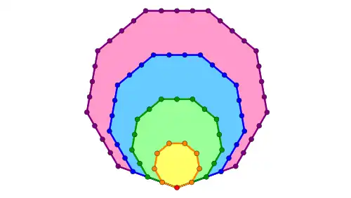 Avec points sur chaque côté du polygone extérieur, on ajoute à l'étape : points sur les sommets et points à l'intérieur des côtés, d'où .