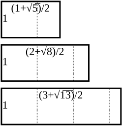 Le p-ième nombre métallique est le rapport entre la longueur et la largeur d'un rectangle tel que si on lui ôte p carrés de taille maximale, on obtient un rectangle semblable à celui de départ.