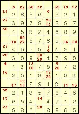 Les Nombres fléchés sont un divertissement mathématique publié par Sport cérébral dans des revues de logique Logigram, Multilogic, Nombres fléchés et anciennement dans Eleusis et Maximath. C'est une variante du jeu plus courant nommé Kakuro.