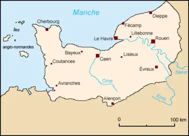 | Villes principales | Capitales historiques : Rouen[2],[3] Caen[4] Capitales administratives : Rouen, Caen, Saint-Hélier, Saint-Pierre-Port. |