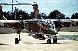 - Force aérienne royale thaïlandaise - 16 OV-10C sont commandés par la Thaïlande en 1969 afin d'assurer des opérations de contre-insurrection. En , les 16 premiers avions sont livrés par le navire américain USS Okinawa au port de Cam Ranh, au Sud-Vietnam. 16 autres appareils sont commandés en 1972 et sont livrés l'année suivante, portant le nombre total à 32 OV-10C. Les Broncos effectuèrent la plupart des opérations de bombardements jusqu'à ce que les F-5E deviennent opérationnels. La force aérienne thaïlandaise utilisa également ses OV-10 comme avion de défense aérienne. En 2003, la Thaïlande retire ses Bronco et fait don de 8 de ses OV-10 aux Philippines[19],[20].