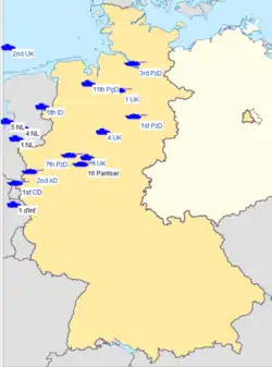 - 1 Legerkorps kwam de la Koninklijke Landmacht des Pays-Bas (dont au mieux 7 % des effectifs se trouvait sur le territoire allemand et l'immense majorité des forces à 350 km de son secteur de déploiement)[9]