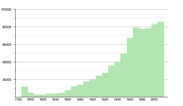 D'après le recensement de 2000, il y avait 82 951 habitants, 32 711 ménages, et 20 967 familles dans la ville. La densité de population était de 404,1 hab/km2. Il y avait 33 753 maisons avec une densité de 571,3 maisons/km2. La décomposition ethnique de la population était : 73,95 % blancs ; 15,27 % noirs ; 0,21 % amérindiens ; 3,25 % asiatiques ; 0,05 % natifs des îles du Pacifique ; 4,33 % des autres races ; 2,95 % de deux ou plus races. 15,63 % de la population était hispanique ou Latino de n'importe quelle race.