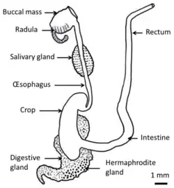 La croissance de la coquille ne cesse pas à la maturité sexuelle, mais ralentit considérablement, les plus grosses coquilles mesurent 7,5–7,7 mm[3].