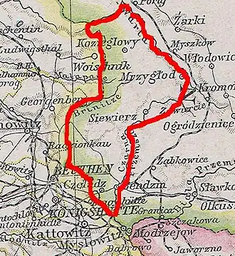 La Nouvelle-Silésie (ou Petite-Silésie) couvre 2 230 km² et compte alors 52 000 habitants[1]. Son territoire correspond au bassin de Dabrowa (pl) aux environs des sources de la Warta, entre Cracovie et Częstochowa. La majeure partie provient du duché de Sievers, possession des évêques de Cracovie, incorporé en 1790 à la république des Deux Nations ; s'y ajoutent des terres situées entre les rivières Przemsza Blanche (en) (Biała Przemsza) et Noire (pl) (Czarna Przemsza) et à l'est de la Warta.
