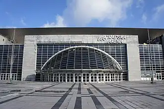 La Belgrade Arena, l'une des plus célèbres salles de sports de Belgrade, est située au 58 Bulevar Arsenija Čarnojevića. Elle couvre une superficie de 48 000 m2 répartis sur six niveaux et peut accueillir entre 18 000 et 25 000 spectateurs selon le type d'événement[32] ; on y organise des compétitions sportives, comme certains matchs du championnat d'Europe de handball masculin 2012, mais aussi des concerts.