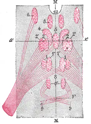 - ↑ (de) Edinger L. in: Archiv für Psychiatrie und Nervenkrankheiten, Berlin, 1885; 16: 858-889 ; Neurologisches Centralblatt, Leipzig, 1885, 4: 309.
