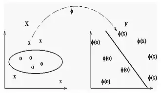 Comme noyau, K correspond à un produit scalaire dans un espace caractéristique basée sur une certaine application Φ :