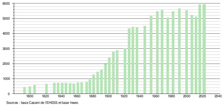 - ↑ Population municipale de référence en vigueur au 1er janvier 2025, millésimée 2022, définie dans les limites territoriales en vigueur au 1er janvier 2024, date de référence statistique : 1er janvier 2022.