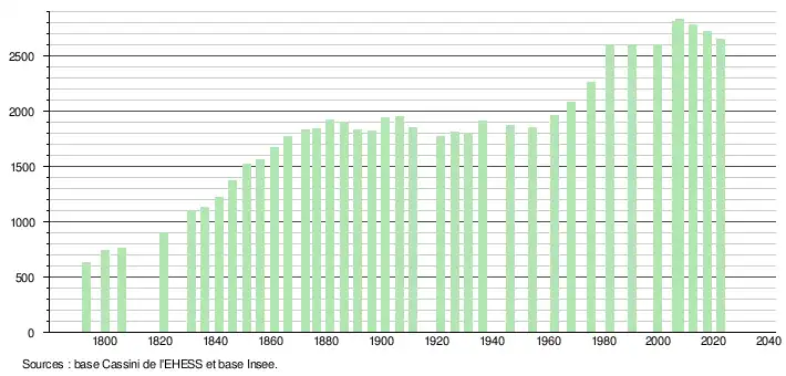 - ↑ Fiches Insee - Populations de référence de la commune pour les années 2006, 2007, 2008, 2009, 2010, 2011, 2012, 2013, 2014, 2015, 2016, 2017, 2018, 2019, 2020, 2021 et 2022.