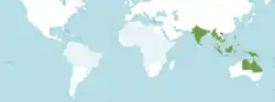 L’espèce est assez répandue tout au long des cours d'eau et des mangroves d'Asie, principalement : îles Andaman, Bangladesh, Archipel Bismarck, Bornéo, Cambodge, îles Carolines, Hainan, Inde, Java, Îles de la Sonde, Malaisie, Myanmar, Archipel Nansei, Nouvelle-Guinée, îles Nicobar, Territoire du Nord (Australie), Queensland (Australie), Philippines, Îles Salomon, Sri Lanka, Sulawesi, Sumatra, Thaïlande, Viêt Nam...