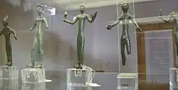 - Petites figurines, dites bronzetti, représentant de simples formes humaines très stylisées.