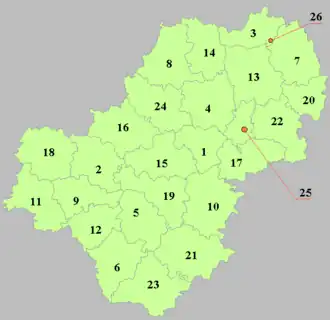| 1 | Raïon de Babynino | Бабынинский | 20 991 | 846.6 | Babynino |