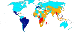 Carte du nombre d'années d'instruction obligatoire chez les enfants par pays du monde en 2023.