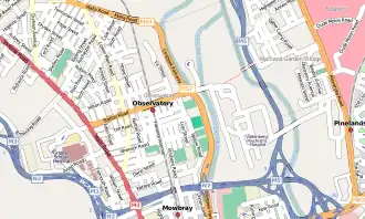Situé à l'est et au sud du City Bowl, au pied de Devil's Peak, Observatory est délimité par De Waal Drive et l'autoroute N2 au sud, Settlers Way (N2) à l'est, la Liesbeeck Park road au nord et Malta Road, Chattam Road, Kippling Street et Browning Road au nord-ouest et à l'ouest.