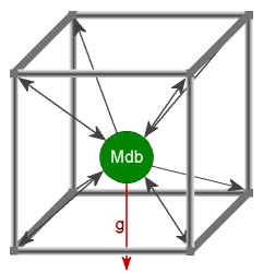 • La position dynamique spatiale réflexe de la mandibule (Mdb), ou posture mandibulaire, dépend des muscles masticateurs (m. temporal, m. masséter, m. ptérigoïfien interne, m. ptérygoïdien externe), des muscles sus-hyoïdiens, des muscles sous-hyoïdiens, des dix-sept muscles de la langue et de la gravité terrestre (g).
