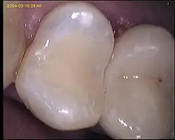 Il s'agit d'un composite très fortement chargé qui est durci sous pression et à forte température. Il en résulte une pièce très solide et esthétique. La réalisation d'un inlay/onlay en composite n'est pas très difficile. L'inlay en composite se colle de préférence[5]. C'est peut-être à l'heure actuelle la technique de soins conservateurs qui présente les meilleures propriétés.
