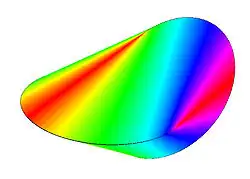 L'oloïde est alors la surface (frontière) de cette enveloppe convexe.