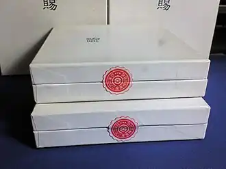 À l'époque de leur production, les caractères Onshi (恩賜) étaient imprimés en lettres d'or sur le paquet, et il était appelé officiellement Produit spécial n ° 1. Lorsque la situation de guerre empira, les caractères en or ont été remplacés par des caractères en noir, puis compilés en un seul caractère, 賜. Ce paquet est ainsi resté la norme pendant les années d'après-guerre.