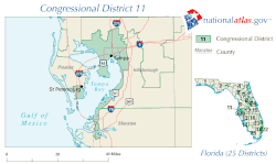 De 1993 à 2013, l'ancien 11e district englobait la majeure partie de la ville de Tampa et ses banlieues ainsi que le littoral du sud-est du comté de Hillsborough. Il comprenait également deux zones situées dans d'autres comtés : les quartiers urbains du sud de Saint-Pétersbourg dans le comté de Pinellas et les quartiers de Bradenton et ses environs dans le comté de Manatee. La majeure partie de ce district constitue désormais le 14e arrondissement, tandis que l'actuel 11e est le successeur de l'ancien 5e district.