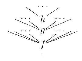 Regardons la structure algébrique que l'on peut mettre sur les ensembles des fonctions à plusieurs variables de (pour tout entier n positif) dans , où est un espace vectoriel réel. On peut multiplier une fonction par un réel, et additionner deux fonctions de . On a ainsi une structure d'espace vectoriel sur chaque , donc une structure de module sur . On peut rajouter une opération de composition, généralisant le classique existant pour les fonctions d'une variable : à et , on peut associer une fonction à n+m-1 variables où on a remplacé par la fonction . On note cette opération , et on l'appelle « produit de composition partiel » (de g à la ième place de f). On peut représenter graphiquement cette opération par une greffe d'arbres :