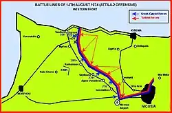 Pendant les deux phases, les forces turques tentent d'avancer à l'intérieur de Nicosie et à l'ouest de la ville, vers l'aéroport international de Nicosie et la route Nicosie-Morphou.