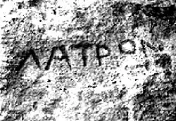 On note que le « M » est ligaturé au « A » à barrette brisée. Cette inscription date probablement du IIe – Ier siècle av. J.-C..