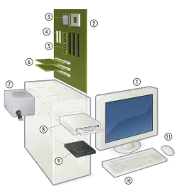 Vue d'ensemble des différents organes d'un ordinateur personnel.