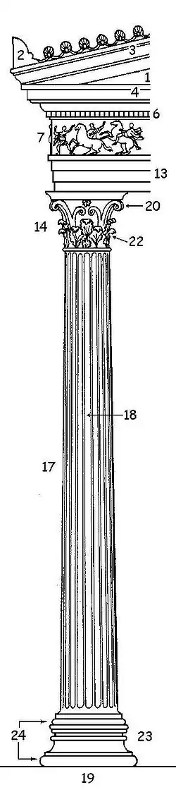 L'ordre corinthien est le dernier des trois ordres architecturaux grecs, dont le caractère est surtout déterminé par une grande richesse d’éléments et un chapiteau décoré de deux rangées de feuilles d’acanthe[1].