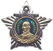 Les insignes de l'ordre restent les mêmes que ceux de l'Union soviétique, seuls la faucille et le marteau sous le médaillon sont retirés.