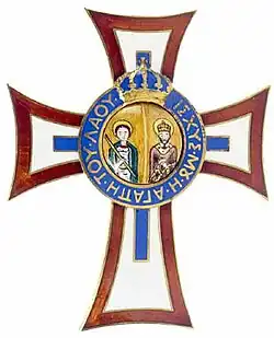 L’Ordre a été nommé ainsi en référence aux saints patrons du grand-père (Georges Ier) et du père (Constantin Ier) de son créateur.