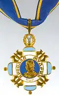 L'ordre est attribué en cinq grades et comporte un ruban bleu avec une bande jaune sur chaque bord.