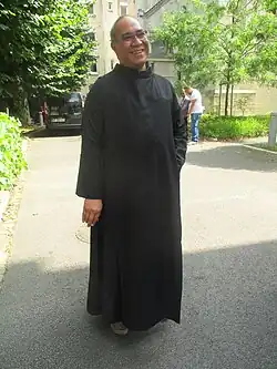 Parfois, les Hospitaliers de Saint-Jean-de-Dieu portent encore l'habit religieux avec chasuble noire et ceinture de cuir.