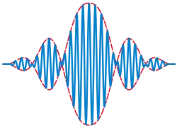 Bohm réactualise à partir de 1952 la notion d’« onde pilote » que le physicien Louis de Broglie forge dès 1923[16]. S'appuyant principalement sur les travaux d'Einstein concernant les photons et leurs propriétés ondulatoires, le physicien français démontre que toute particule élémentaire (électron, proton, etc.) est associée à une onde, qu'il nomme « onde de matière » ou « onde pilote », et dont on peut calculer la longueur. Cette onde ne peut pas être envisagée comme une onde unique se propageant indéfiniment dans l'espace : elle constitue un ensemble d'ondes superposées nommé par de Broglie « paquet d'ondes » ou « train d'ondes », se propageant de façon linéaire et « guidant » l'électron dans son déplacement. Chaque phase de l'onde se déplaçant à une vitesse légèrement différente (définie par la vitesse de phase ), elle a donc une longueur d'onde un peu différente mais restant comprise entre deux valeurs déterminées, l'une minimale et l'autre maximale. Or, dans ce contexte particulier où les ondes sont légèrement décalées (puis qu’ayant des fréquences un peu différentes), un certain nombre d'entre elles disparaissent à n'importe quel endroit géographique de la trajectoire suivie, les crêtes et les creux s'annulant, tandis que d'autres se superposent, provoquant en un endroit géographique unique un pic de renflement important où les ondes sont dites en phase. C'est au déplacement de ce pic (dont la vitesse équivaut à la vitesse de groupe ) que correspond, d'après Louis de Broglie, le mouvement véritable de la particule.