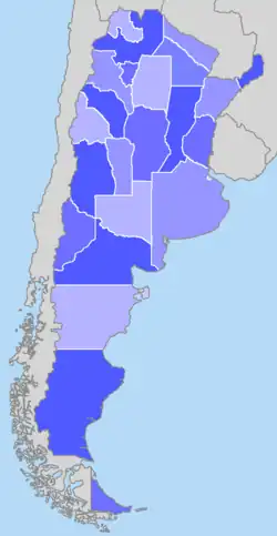 L'Argentine est une république fédérale organisée en 24 juridictions : 23 provinces et une cité autonome, Buenos Aires, érigée en district fédéral. Chaque province est subdivisée en départements (departamentos), à l'exception de la province de Buenos Aires (différente de la cité autonome), qui est subdivisée en arrondissements (partidos).
