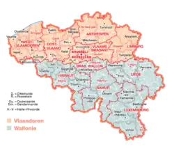 Depuis le , il y a 300 communes en Flandre, 262 communes en Wallonie et 19 communes à Bruxelles-Capitale, soit 581 communes au total.
